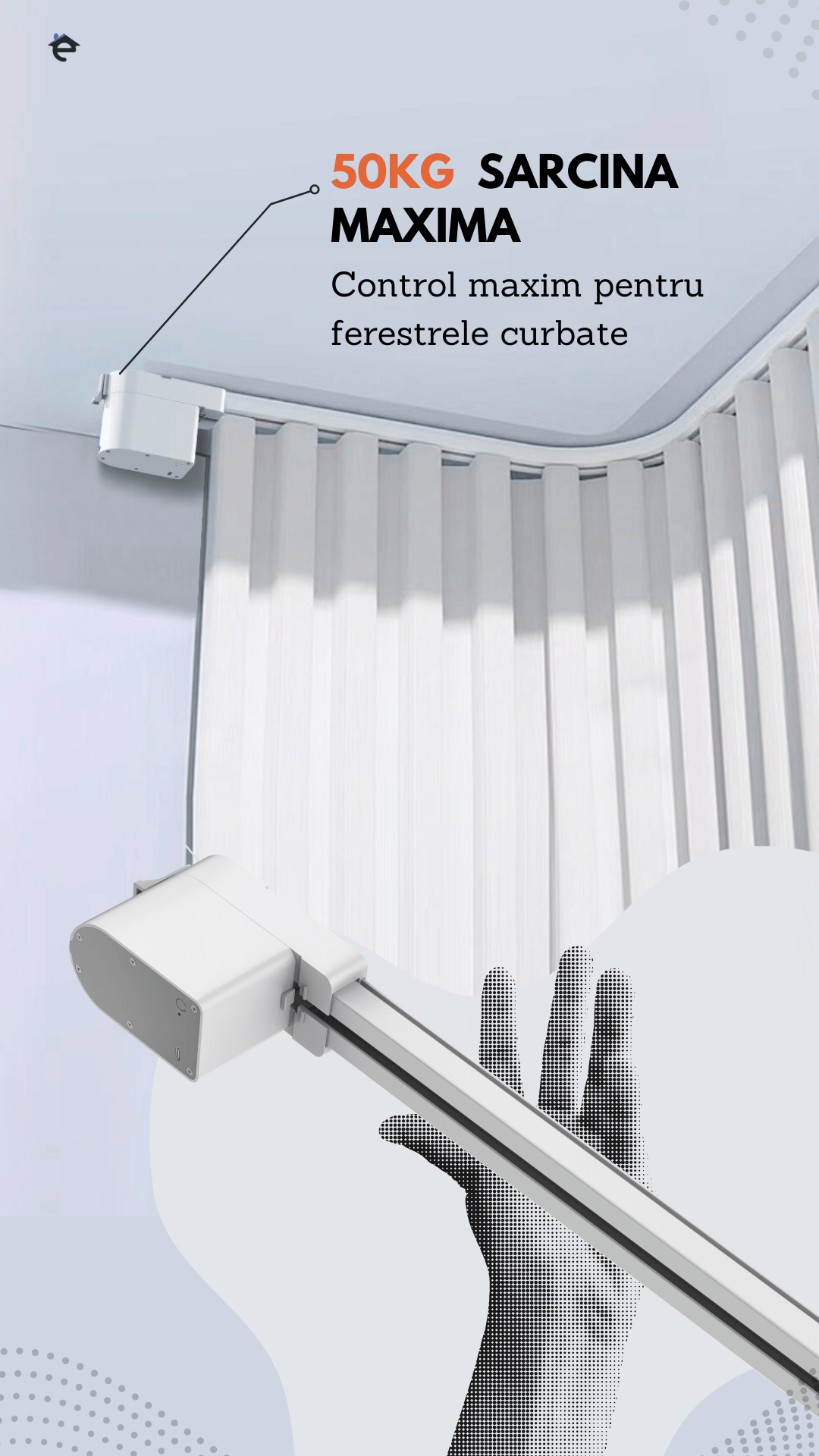- Instalare Simplă și Flexibilă: Poți alege între șine drepte sau curbe, în funcție de preferințele tale de design. Mai mult, motorul detectează automat lungimea traseului și se oprește automat la întâlnirea unui obstacol, protejându-l de eventuale daune.